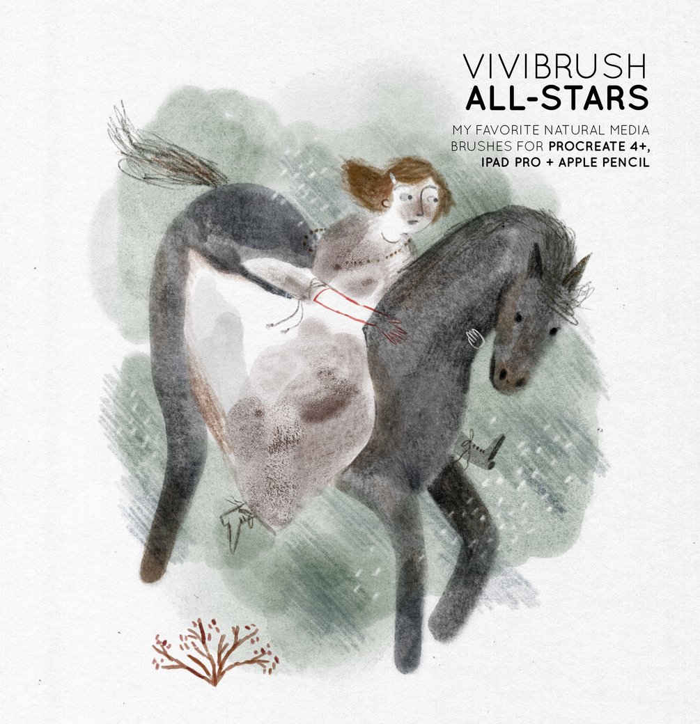 These brushes are so much fun to use. Meant to be layered they supplement the other Vivibrush Packs wonderfully, bringing high resolution texture and randomness into your painting for a result that is so close to traditional media you can scarcely tell the difference!